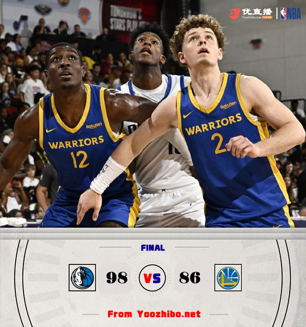 直播车讯 7月13日 NBA夏季联赛继续开打,勇士和独行侠迎来一场交手,勇士方面阵容核心以首轮19号秀波杰姆斯基为主;独行侠方面则是二年级生哈迪加上今年12号新秀莱夫利为核心出战。首节之争两队状态相当多次交替领先,独行侠在最后一分钟里抓住勇士熄火的机会并由沃克命中三分拿到主动权;次节勇士凭借基诺内斯的连续拿分短暂反超比分;不过哈迪在进攻端状态不错,他在这一节连拿8分帮助球队守住6分优势进入下半场。休息归来场面依旧,独行侠虽然一度拿到9分优势但也无法接管比赛,勇士这边基诺内斯状态出色连拿10分,勇士用一波19-10的攻势迅速抹平比分。末节开局独行侠开局连续两次打成2+1后又在外线命中三分,他们送出15-5的攻势建立起两位数领先;这之后勇士疯狂反扑,最后时刻他们制造一记恶意犯规一个回合拿下4分,最后戴维斯命中三分扳平比分将比赛拖入加时。加时赛规则为任意一方率先拿到7分为胜者,双方一路交替拿分都拿到了6分后的赛点,最后独行侠凭借布拉克斯顿-基的补扣实现绝杀。最终,独行侠98-96险胜勇士拿下比赛,同时也送勇士三连败。