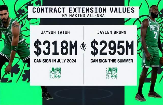 来源:直播车05-11 15:26直播车05月11日,NBA官方公布了年度最佳阵容。虽然这份名单争议较大,但绿军双探花杰伦·布朗和塔图姆的入选,都是实至名归。而且,随着两人入选年度最佳阵容,他们都已经具备签下了超级顶薪的资格。布朗在今夏有资格与凯尔特人续签5年2.95亿美元的新合同,而塔图姆有资格在明年夏天和凯尔特人续签5年3.18亿美元的新合同。所以凯尔特人,会给出如此巨额的合同吗?
