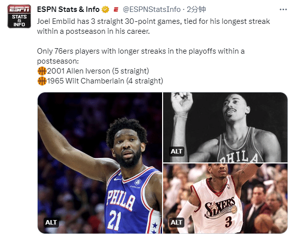 来源:直播车05-10 11:30直播车05月10日,NBA季后赛76人G5击败凯尔特人夺赛点,系列赛大比分3-2夺赛点,恩比德全场23投10中拿到33分7篮板3助攻4盖帽,追帽塔图姆和布朗双探花太疯狂,末节轰进三分疯狂庆祝以及大笑鼓掌,恩比德创纪录,季后赛连续3场30+追平生涯最长纪录,也是队史第三长纪录,在场正负值+21全队第一。