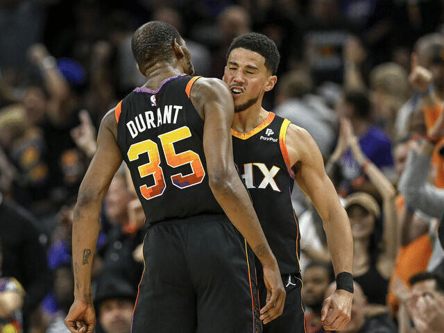 布克25投20中,得到47分,平个人季后赛生涯纪录。杜兰特得到39分,但效率不如布克,31投12中。