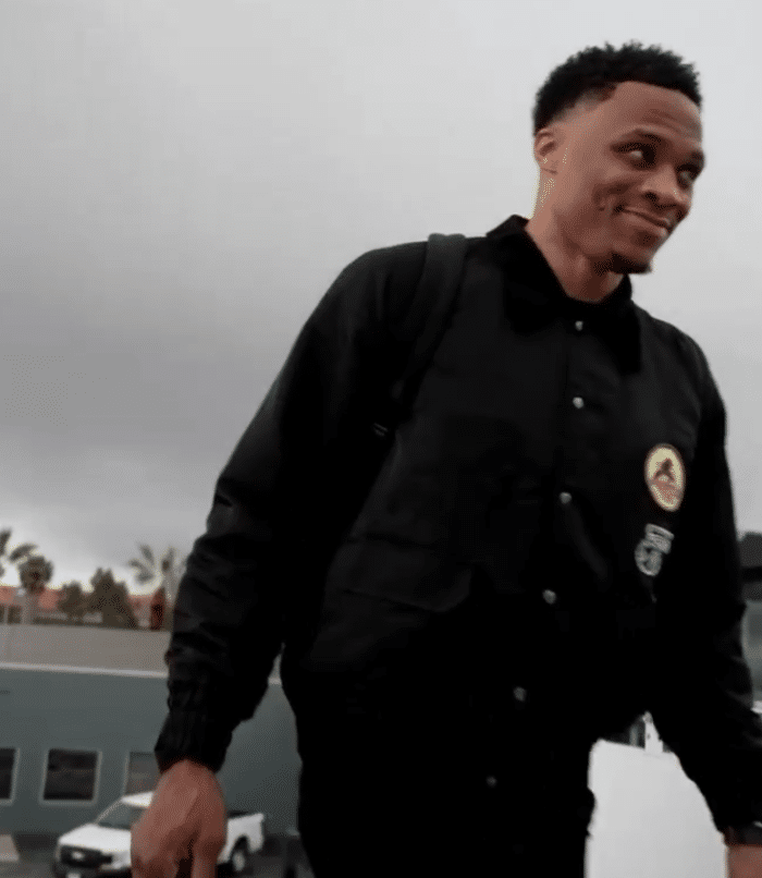 快船众将飞往客场挑战掘金,小卡身穿灰色连帽卫衣,背着双肩包并且单手抄兜,表情十分严肃;洛杉矶当地挺冷,乔治、曼恩等人都穿着羽绒服,不过小卡、威少、鲍威尔都穿的不厚;威少身穿黑色棒球服,提着行李登上飞机,走着走着,威少突然露出搞怪笑容。