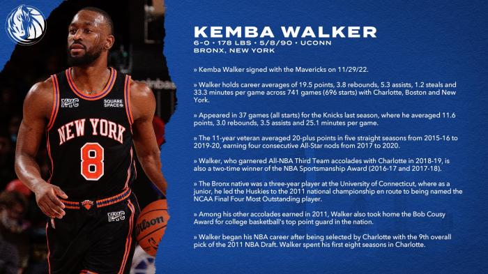 据名记marc Stein报道,肯巴-沃克和独行侠签一份为期一年的无保障合同,并且他不会立刻出场比赛。