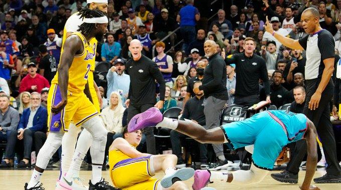 在湖人和太阳比赛中,末节场上发生冲突事件——布克防守时放倒里夫斯并且怒视对手,艾顿则是站在里夫斯身旁,见状贝弗利为队友抱不平,推倒艾顿引发冲突,场面一度十分混乱,威少和浓眉两大球星都冲到第一线;裁判多次回放之后,最终贝弗利被驱逐离场,布克一级恶意犯规,艾顿吃到一个技术犯规。