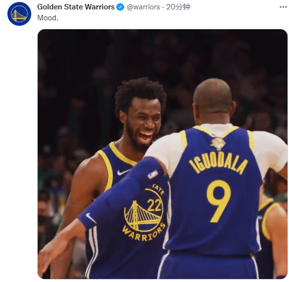 勇士官方晒出维金斯的签约照,嘴哥签字时一脸认真的表情;勇士官方连续更新动态,晒出维金斯和伊戈达拉昔日在赛场上疯狂庆祝的画面,嘴哥和一哥击掌并拥抱,之后维金斯还开心地拥抱科尔;勇士官推晒出维金斯抱着总冠军奖杯的画面,还晒出维金斯上赛季隔扣东契奇的疯狂一扣。