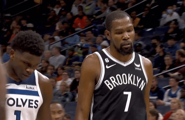 第二节,西蒙斯带领替补阵容出击,可他仅打不到5分钟就因五犯被迫下场,不过篮网一直保持领先;欧文上场后,持球杀到禁区打成不讲理2+1,突破爱德华兹并且面对唐斯和戈贝尔打成2+1,这一球太硬气;欧文单挑爱德华兹轰进撤步三分,杜兰特上场后也得分,原地干拔3+1太狠,在杜欧的带领下,篮网半场65-49领先16分。