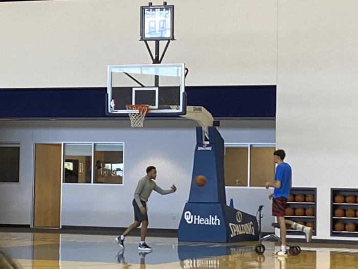 霍姆格伦因伤提前赛季报销仍旧现身球馆训练,从现场画面来看,雷霆榜眼穿着保护靴进行了投篮训练,有时候把受伤的右脚放在助力车上继续投篮,有时跪在助力车上投篮;据报道,霍姆格伦是最后一位离开雷霆球馆的。