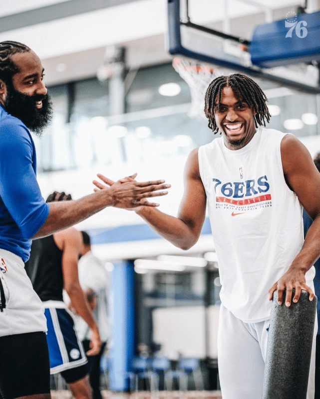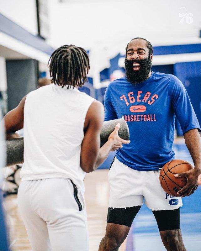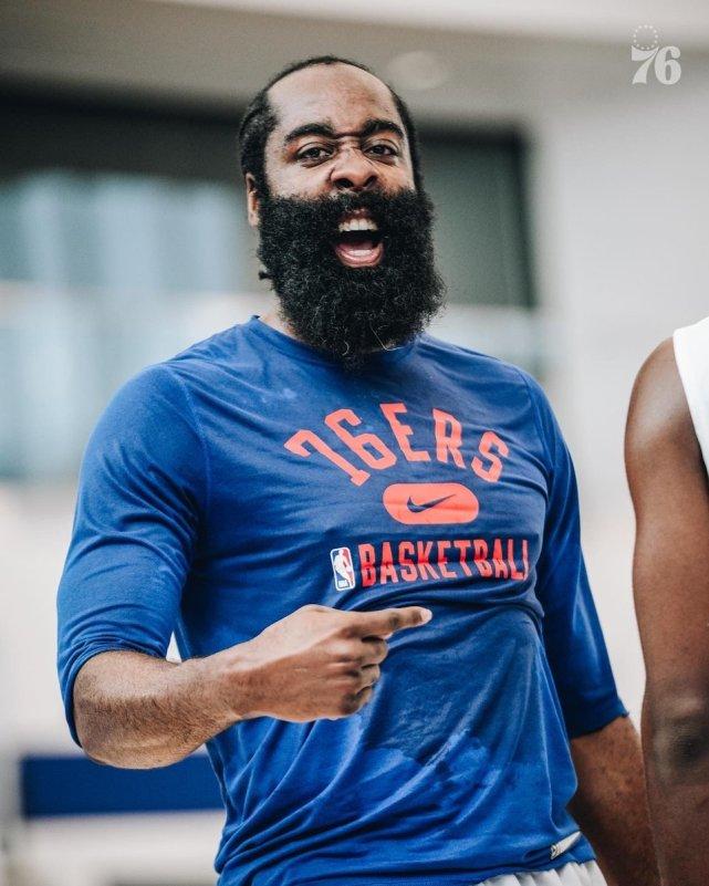 哈登回费城训练表情抢镜!76人官媒自问自答:猜猜谁让他这么嗨
