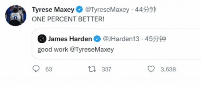 休赛期,陷入不和传闻的两人,很快打破了传言。哈登晒出了自己与马克西合练的视频,视频中还有费城的助教卡塞尔。他们三人讨论战术跑位,气氛很不错。哈登还更新社媒,艾特马克西,称赞他“干得好”。马克西回应:“每天进步一点点!”