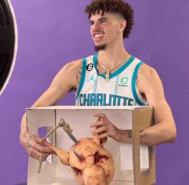 黄蜂官方晒出了球员们拍摄定妆照的画面,三球一脸微笑,配合摄影师。不过随后的一项活动中,他就没那么淡定了。黄蜂官方组织球员玩起了竞猜游戏,不看只摸来猜纸箱里是啥。三球一边摸一边嘀咕:“是什么面具服吗?”工作人员回应道:“你看看呗。”三球低头一瞅,只见手中是一颗可怕逼真的猪头,吓得赶紧撒手+尖叫!