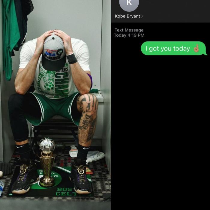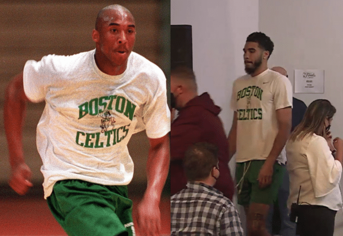 塔图姆今天穿的训练T恤是90年代的,因为该件训练服上的绿军队标已在96年之后更换;很明显塔图姆是有意为之,以此致敬科比以及激励自己;总决赛G1,塔图姆全场出战42分钟,17投3中仅仅拿到12分,投篮命中率仅17.6%,不过他送出13次助攻以及抢到5个篮板,换个方式带队赢球。