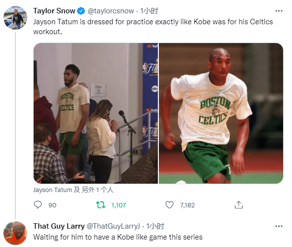 有球迷表示:等着塔图姆在总决赛中打出科比般的表现。