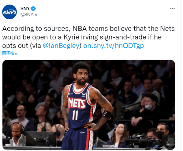 此前篮网记者曾报道篮网完全不愿意给欧文续签一份长约,拒绝接种疫苗和伤病史让篮网十分担忧;如今纽约记者更是爆料,若欧文不执行球员选项,篮网愿意把欧文交易出去。