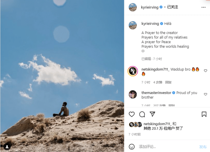 欧文已经为篮网打了3个赛季,三年仅仅打了105场比赛,伤病的因素不可控,但欧文的信仰已经严重伤害了球队;此前欧文晒出自己赤膊盘腿坐在土坡上祷告的照片,并且配文写道:向造物主的一次祷告,为我所有亲戚而祈祷,向和平的一次祷告,为世界的愈合而祈祷!