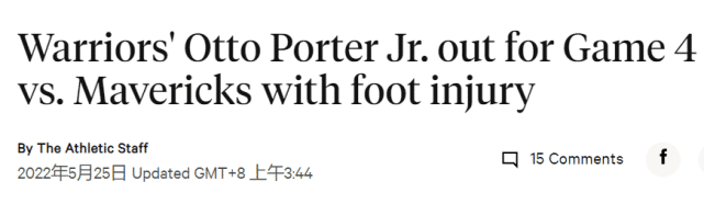 谈到波特的伤情,科尔说:“他仍有酸痛感,我们必须做出明智的决定。这样可以给他几天的休息时间,为可能出现的第5场比赛做好准备。”本赛季季后赛,波特场均5.5分4.1篮板2.1助攻。