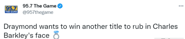 训练后的采访环节,追梦夸奖了库里在G1抢下12个篮板,成为篮板王。追梦说:“他昨晚在篮板方面的表现绝对是不可思议的。”追梦也称赞克莱总能用表现带来胜利,和过去一样没啥改变。克莱G1上半场0分,但下半场迎来爆发,特别是第三节单节得分上双。追梦还调侃了巴克利,表示自己要再拿一个总冠军戒指,在巴克利脸上摩擦。
