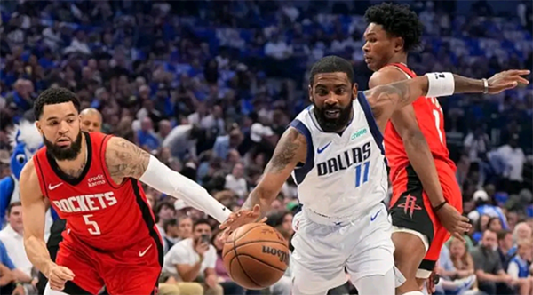 加时赛,欧文火力不减,突破拉杆上篮太精彩,关键时刻,PJ-华盛顿连中三分杀死比赛,最终独行侠加时逆转火箭;赛后欧文和东契奇勾肩搭背相互搀扶,全队抱在一起庆祝。