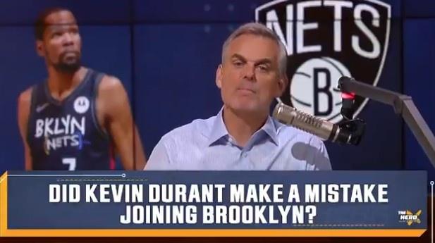 值得一提的是,名嘴Colin此前在节目中认为杜兰特应该为离开库里选择欧文而后悔“杜兰特做了一个决定——离开篮球比赛里最无私的队友之一斯蒂芬-库里,离开了最聪明的教练之一(科尔)、离开了最棒的总经理之一(迈尔斯)、离开了最安静的超级球星(克莱),他(在勇士时)也不用去跟对手身体对抗,因为每一晚德雷蒙德-格林都在帮他跟对手对抗。他为了凯里-欧文,放弃了这些。”