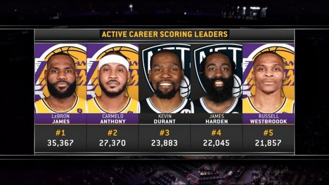 来源:直播车10-07 19:59直播车讯 距离新赛季的大幕拉开越来越近,最近美国媒体统计了新赛季得分榜排名前五的球员,令人意外的是,前五球员基本上都集中在湖人和篮网这两支球队当中,那么现役得分榜历史前五的巨星都有谁呢?我们一起来看一下吧!