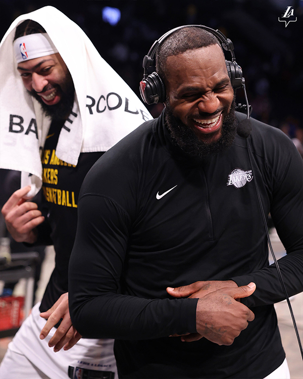 赛后接受采访时,浓眉搞怪干扰老詹采访,两人相视后都咧嘴大笑;之后里夫斯跳上老詹的后背,并且高呼:勒布朗-詹姆斯。