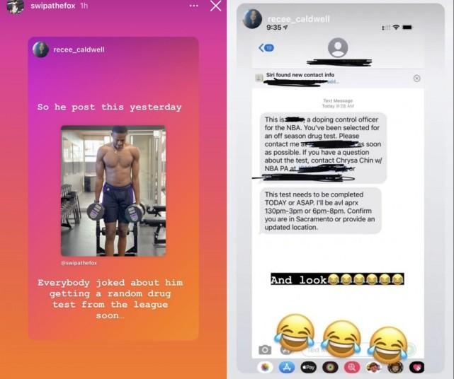 福克斯的经历,简直是完美复刻了两年前的卡鲁索。当时,卡鲁索一张被明显PS的训练照出现在社媒上,照片上的卡鲁索肌肉发达,明显变壮了不少。很快,他就收到了联盟抽查药检的通知。卡鲁索在社媒上晒出了联盟的通知,写道:“上周:我在训练房的PS照片出现在社交媒体上;本周:休赛期随机药检”,卡鲁索也配上了一个哭笑不得的表情。