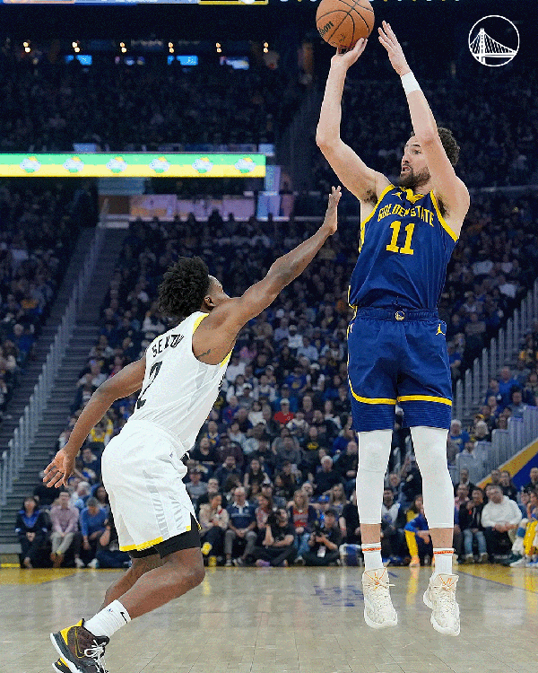 第二节,面对爵士的反扑追分,汤普森上场后无视防守连续命中中距离以及连续干拔轰进三分,再加上保罗输送三分,勇士一波15-2领先到23分;之后爵士13-2反扑,波杰连得4分止血,半场打完勇士68-54领先14分。