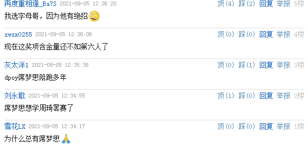 另外,西蒙斯排在第二名确实叫人惊喜,你们认为西蒙斯的交易价值真是很低吗?想要得到西蒙斯的球队并不少,问题是他们都看见了西蒙斯铁了心离开76人,谁不是用最小的代价得到西蒙斯?网友更是为西蒙斯喊冤,直说西蒙斯陪跑DPOY多年了,作为一个很优秀的防守尖兵,西蒙斯确实是任何一支球队不可或缺的核心组件。