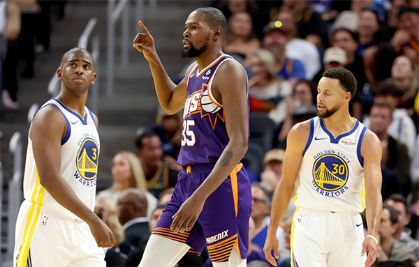 17年生涯至今,杜兰特先后为雷霆、勇士、篮网和太阳四支球队效力,仅在勇士时期联手库里、汤普森和追梦组成超级战舰才如愿捧起总冠军,两次夺冠并且两次夺得FMVP;离开勇士后,杜兰特抱团却总是黯然退场,不仅未能带队夺冠,而且仅杀进季后赛第二轮。