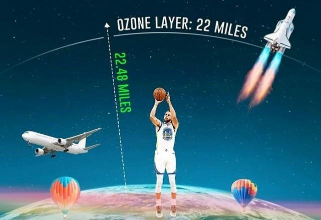 来源:直播车07-25 10:24直播车讯 北京时间7月25日,美媒clutchpoints晒图公布了一项有趣的数据,勇士球星斯蒂芬-库里生涯投篮命中的总距离达到22.48英里(约36178米),而地球表面的臭氧层高度大概是22英里(约35405米)。美媒调侃,库里的进球总距离已经可以冲破臭氧层了。