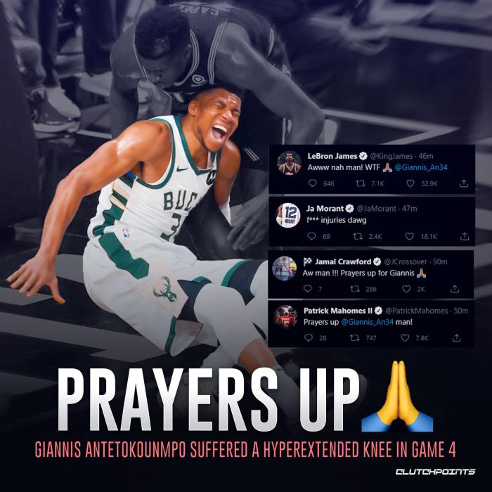 字母哥受伤后,詹姆斯等球星都发推为他祈祷,特雷-杨、卡佩拉也为字母哥发推祈祷;所幸字母哥没有遭遇十字韧带撕裂的重伤,目前雄鹿大比分2-2老鹰,领袖受伤成为雄鹿冲冠路上的最大意外事件。
