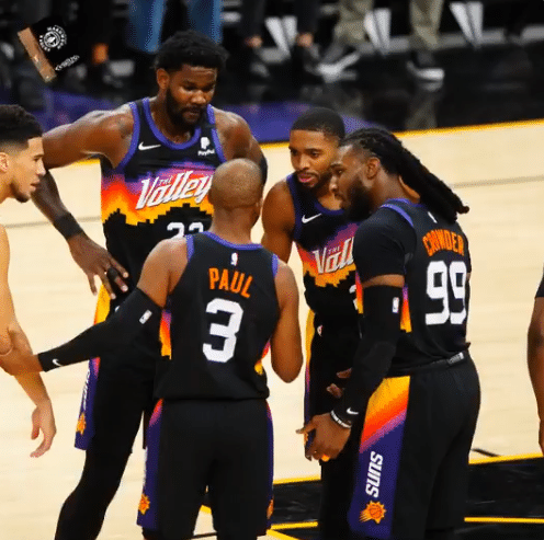 西决系列赛,保罗因违规被联盟隔离而缺席了前两场比赛,不过布克带队连赢两场;G3复出之后,保罗的进攻状态并不好,但作为太阳领袖,CP3在场上的价值很大,关键时刻他总能挺身而出,G4生死时刻连续命中罚球,从而带领太阳拿到赛点。
