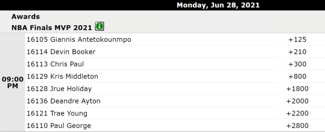 最新总决赛MVP赔率出炉!字母哥居首保罗第三 米德尔顿已升至第四