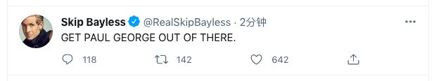 乔治低迷的表现也让NBA名记SKIP 在解说中吐槽,赶快把乔治换下去。所幸的是,卢指导似乎听到了SKIP的建议,乔治下场后,快船队反而再一次将比分拉开,着实让乔治尴尬。