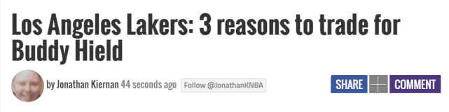 来源:直播车06-28 14:58直播车讯北京时间6月28日,美媒LAKESHOWLIFE为湖人休赛期引援支招,他们列出了三条理由,指出湖人应该力争换来国王神射巴迪-希尔德,并给出了一套3换1的交易方案。美媒认为希尔德能够成为詹眉的好搭档,提升湖人的实力,有助于他们在2021-22赛季继续冲击总冠军。