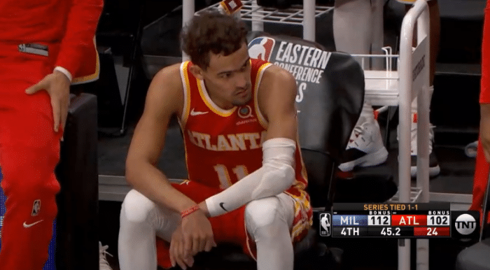 赛后老鹰主教练麦克米兰表示,特雷-杨末节在场上时脚踝一直很痛,本来没打算让他上场,因为不确定这是否会对他的伤势有影响,杨本人也赛后也表示自己的脚踝很痛,接下来杨将接受更多治疗,预计明天做核磁共振,对脚踝受伤很沮丧。