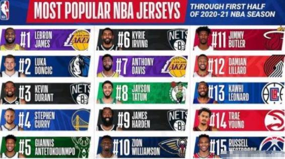 近日,NBA公布了本赛季常规赛球衣销售榜单,詹姆斯依旧位居榜单的首位,排名2-9的球员分别为东契奇、杜兰特、库里、字母哥、欧文、浓眉、塔图姆、哈登、锡安。让人意外的是憧憬来到大城市激活自己商业价值的伦纳德只排在13位,有些尴尬。SO,问题来了,球衣销量出炉,为何来到大城市的伦纳德销量还不如年轻的东契奇?那啥,还请诸君听我往下细细道来。