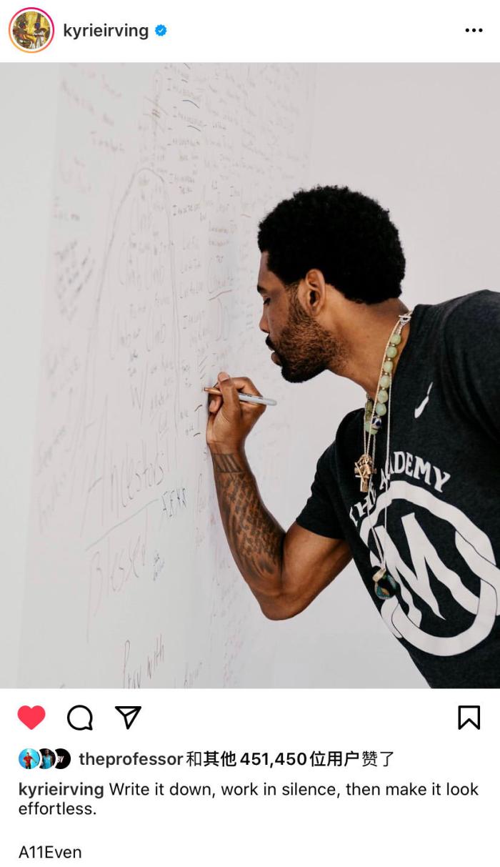 而过去几天,欧文仿佛消失一般,除了关于他可能被交易的新闻之外,欧文没有参加任何采访以及公开露面。在杜兰特频繁怒喷皮蓬的时候,欧文可能还在消化半决赛失利的沮丧。就在不久之前,欧文终于现身了,他还更新了社交媒体,用一句话激励自己。