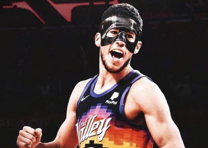 布克戴面具出战!鼻子被撞歪后决定效仿科比,亲自给面具侠打电话