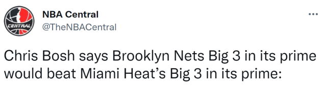 同在巅峰3v3谁能赢?波什给出答案:篮网三巨头能击败热火三巨头