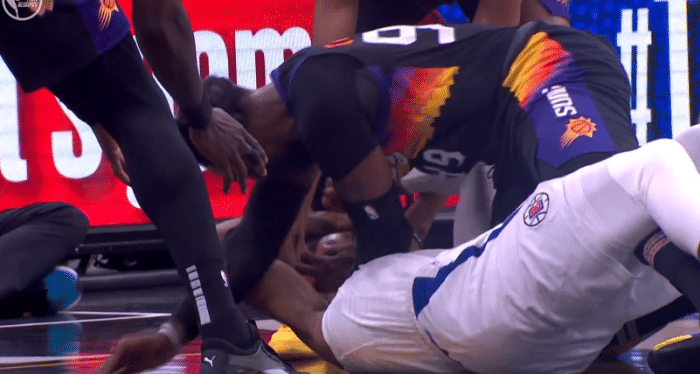 来源:直播车06-23 10:20直播车讯 北京时间6月23日,太阳和快船西决第二场,首节开场没多久,场上就发生激烈的身体接触,太阳悍将克劳德倒地和乔治拼抢球权,小莫里斯为队友抱不平,推了一把克劳德,最终两人都吃到技术犯规。
