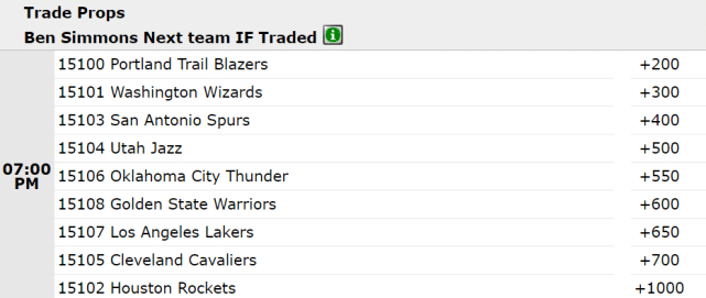 先来看看本-西蒙斯。西蒙斯投篮能力备受质疑,罚球命中率差到离谱。不少美媒认为费城休赛期应该寻求交易西蒙斯,在他的最新交易赔率榜上,出现了9支球队。排名第一的是开拓者,赔率是+200。开拓者的境况和费城类似,外界普遍认为他们下赛季的阵容会有较大变动,利拉德和麦科勒姆这对后场双枪,有可能被拆散。