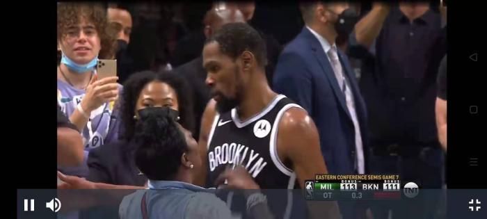 常规赛的48分钟,当篮网队一次次陷入困境,杜兰特一次次挺身而出,当哈登依旧缺乏杀伤力,当乔哈里斯依旧扮演着卧底的情况,杜兰特在常规赛时间解决了所有的问题。比赛来到最后时刻,篮网队依旧落后4分,此时解决球队的依旧是杜兰特,无解的干拔投篮将比分追进。