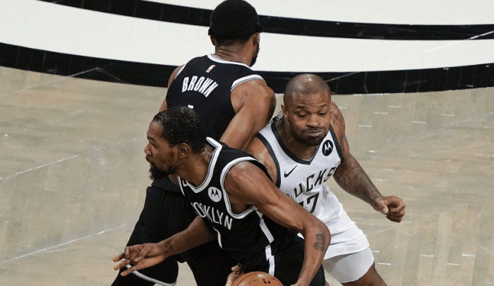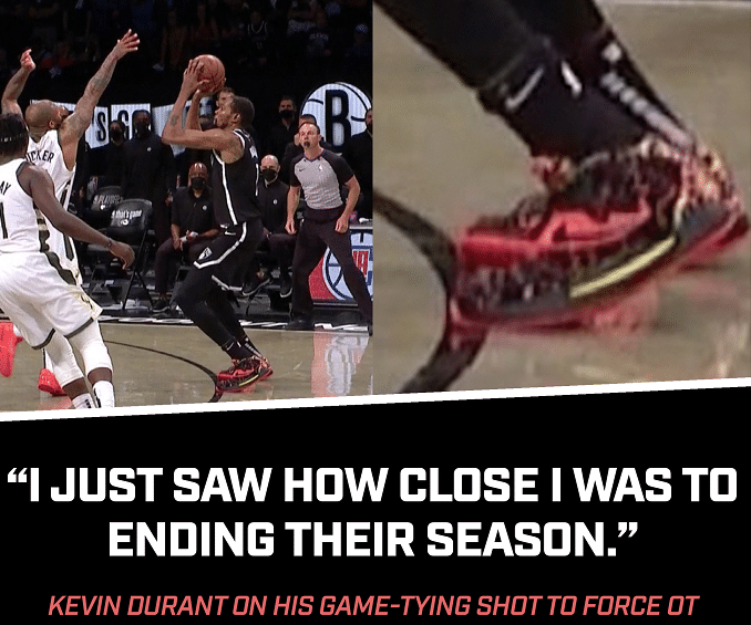 比赛结束之后,大家热议最多的是杜兰特在第四节还剩下1秒投进的大号2分,当时篮网只落后2分,杜兰特迎着塔克的防守命中了踩着三分线的一球,扳平比分,这个球也将系列赛拖入到了加时赛。很可惜的是这个球不是三分球绝杀,赛后杜兰特谈到这点的时候也是爆粗,称自己本来有机会将雄鹿送回家的,可惜的是投出的最后那个球不是三分。