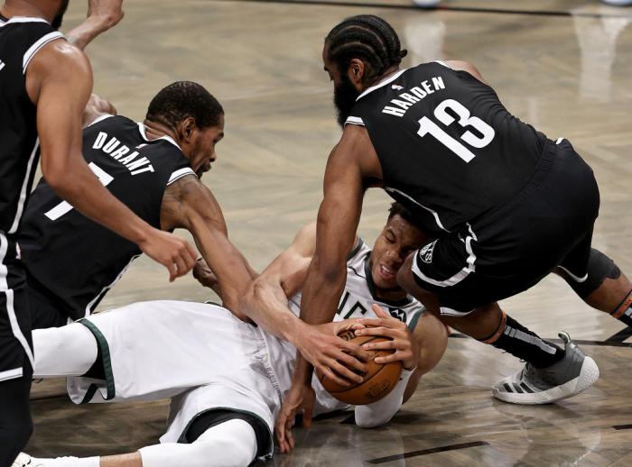 哈登带伤连续打了三场比赛——G5天王山出战46分钟10投1中仅5分6篮板9助攻,G6出战40分钟9中5拿到16分5篮板以及抢七大战苦战53分钟,17投5中22分9篮板9助攻;为了帮助杜兰特以及篮网,哈登提前带伤复出,职业精神令人动容,不过哈登带伤出战的状态并不好。