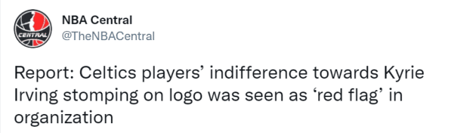 另外,报道还称绿军球员对欧文脚踩LOGO一事漠不关心,这被管理层视为一种危险的信号。球员们没有表现出为凯尔特人效力的自豪感,管理层认为这支球队历来的竞争文化正在消退。