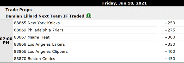 来源:直播车06-18 11:03直播车讯北京时间6月18日,据此前报道,多支NBA球队已经向开拓者询价利拉德,这位波特兰的超级球星如果被交易,最有可能前往哪支球队呢?最新赔率显示,尼克斯排名第一,费城位居第二,而缺少交易筹码的湖人,位居第四位。