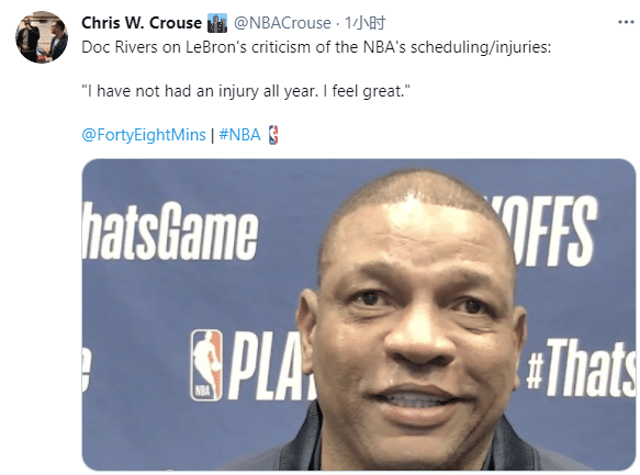 NBA官方回应詹姆斯!里弗斯调侃全年没受伤,美媒:伤病毁了季后赛