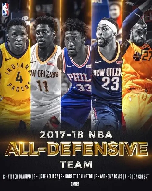 来源:直播车06-16 20:56 直播车讯北京时间2018年5月24日,NBA官方公布了2017-2018赛季NBA常规赛最佳防守阵容一、二队名单,爵士中锋戈贝尔得到了94张最佳防守第一阵的选票,无可置疑的入选最佳防守一阵,另外入选最佳一阵的还有安东尼-戴维斯(新奥尔良鹈鹕队)、考文顿(费城76人队)、奥拉迪波(印第安纳步行者队)、霍勒迪(新奥尔良鹈鹕队)。