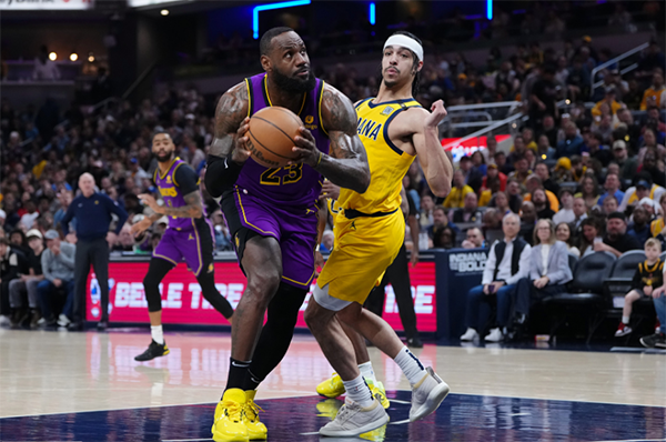 客场对阵步行者,詹姆斯第一节上场8分钟,3投2中拿到4分5篮板3助攻,在反击中空接暴扣,进攻端还助攻浓眉灌篮,不过湖人众将的三分手感糟糕,首节三分9中1,而且单节出现6次失误,其中里夫斯3次和浓眉2次。