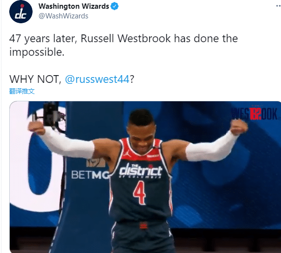 韦少182次三双超越大O引热议,奇才官方第一时间晒提前录制的视频,恭喜韦少正式加冕历史三双王,奇才CEO以及众高管都在视频中恭喜韦少,骑士球星乐福也恭喜自己的兄弟;奇才官推连续更新多条动态,写道:47年后,韦少做到了不可能发生的事,为什么不呢!