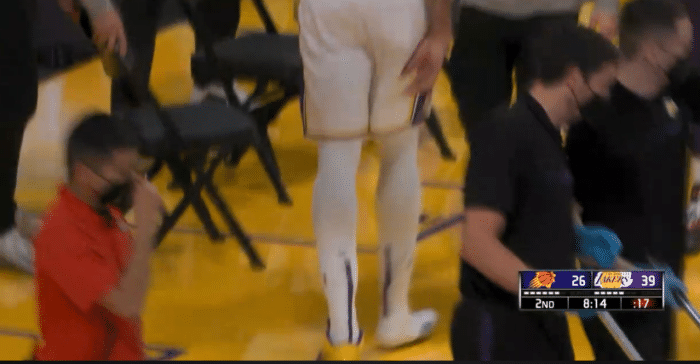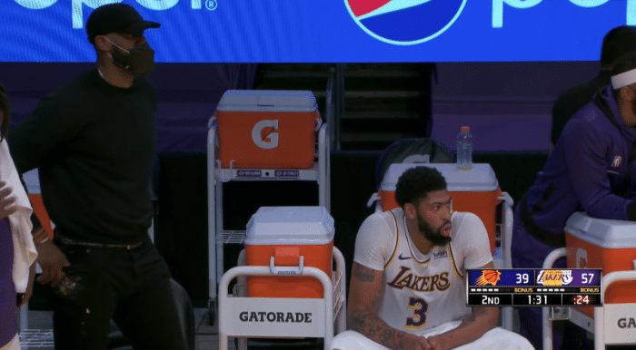 詹姆斯多次和浓眉同框沟通,半场结束时,库兹马走在最前面,詹姆斯突然扭头,然后和塔克一起返回更衣室;詹姆斯因伤无法出战,时刻心系球队,预计詹姆斯将在对阵尼克斯或者火箭比赛中再次复出。
